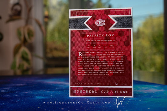 Patrick Roy Montreal Canadiens Expansion Era Signature Cut Card *Large