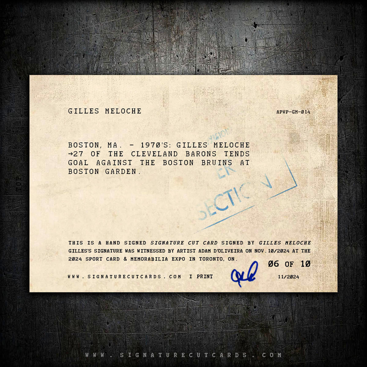 This is an autographed Denis Herron & Guy Lapointe Pittsburgh Penguins & Montreal Canadiens AP Wirephoto card. Handcrafted & hard-signed.