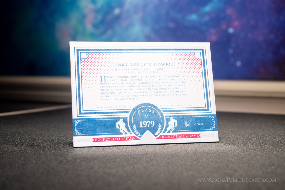 This is a custom-made New York Rangers Signature Cut Card of Harry Howell.