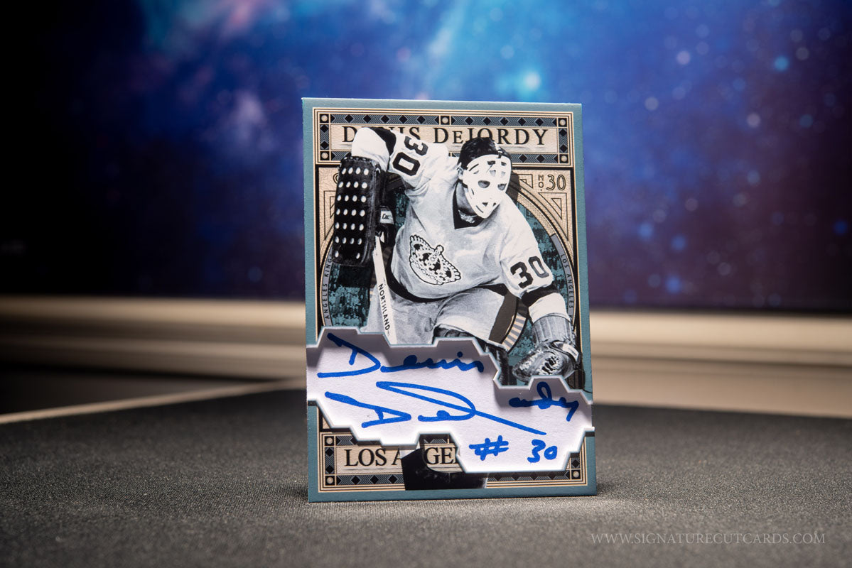 This is a custom-made Los Angeles Kings Signature Cut Card of Denis DeJordy.